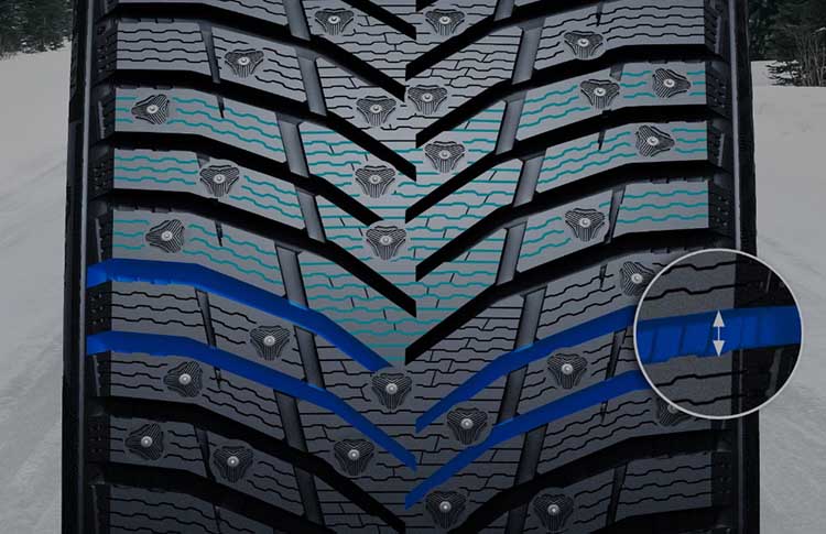 Ключевым элементом в конструкции изделия является инновационный состав резиновой смеси, специально разработанный для этой модели. Структура компаунда многоуровневая — она сочетает гибкость и прочность, что обеспечивает устойчивость к морозам и одновременно уменьшает внутренние потери энергии. Это позволяет уменьшить сопротивление качению, благодаря чему резина помогает экономии топлива и снижению выбросов углекислого газа. При этом прочность структуры предотвращает появление микротрещин, продлевая ходимость. Используемая формула оптимально адаптируется к различным температурным режимам, что позволяет выдавать одинаково высокие показатели как в сильные морозы, так и в относительно мягкую зиму.