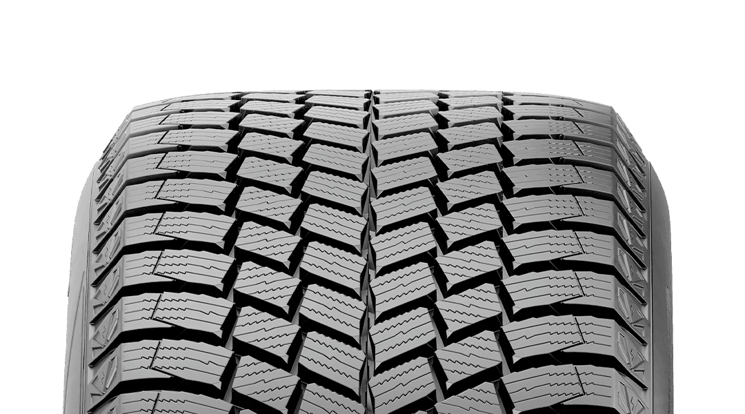 Разноуровневый рисунок, сетка дренажных каналов и продуманное расстояние между ламелями дают автошине возможность не только отлично тормозить, но и равномерно истираться. Параллельные прорези и продольная центральная дорожка увеличивают сцепление на рыхлом снегу, а многочисленные протекторные кромки цепляются за скользкие участки, словно зубья. Эти особенности обеспечивают эффективное торможение даже в «нулевых» условиях и продлевают срок службы резины.
